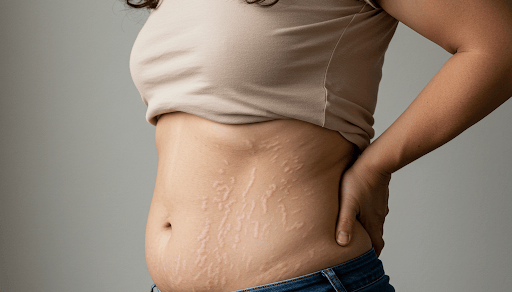 As estrias são cicatrizes que se formam na pele quando ela é esticada ou encolhida rapidamente. Essa mudança abrupta faz com que as fibras de colágeno e elastina, que dão sustentação à pele, se rompam.